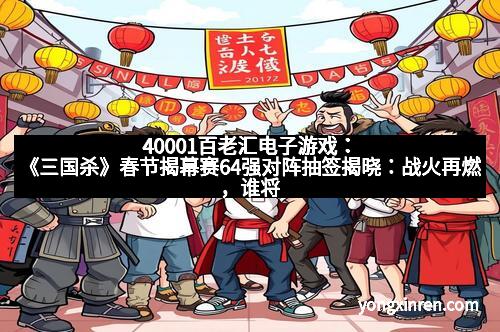 春节,是中华民族最热闹的节日之一,也是传统文化的集中展现。而在这个特殊的时刻,《三国杀》这一深受玩家喜爱的卡牌策略游戏,也迎来了年度必看的盛事——春节揭幕赛。作为《三国杀》赛事体系中的重头戏,此次比赛吸引了全国范围内众多顶尖玩家、战队和热情粉丝的关注。